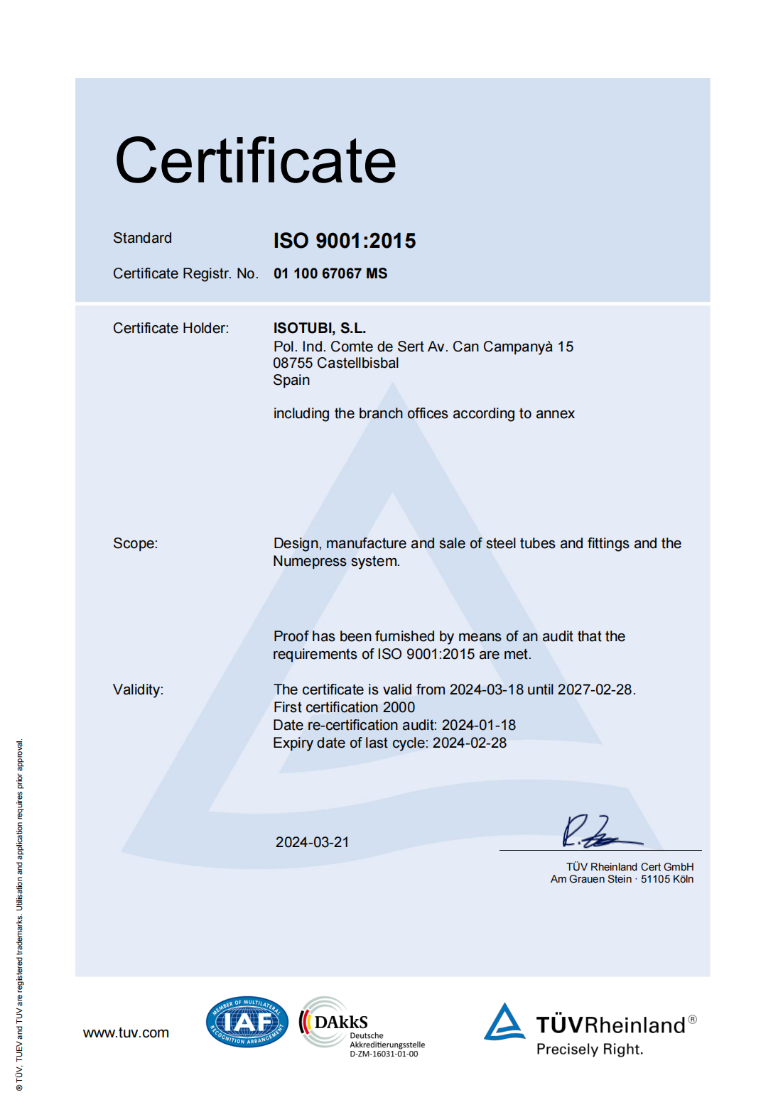 Isotubi是位于巴塞罗那的第二代家族企业,专门从事冲压件和不锈钢管业务,拥有 50 年的丰富经验。